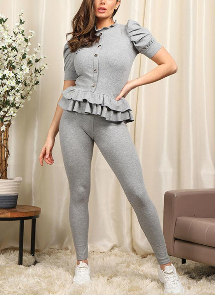 Short Sleeves Two Piece Suit with Ribbed Legging Co-Ord